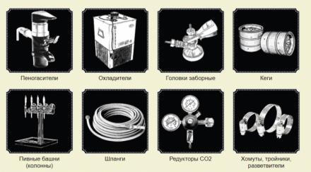 Предлагаем широкий ассортимент оборудования для розлива пива из кег: кеги, тройники, пивные башни, редукторы CO2,