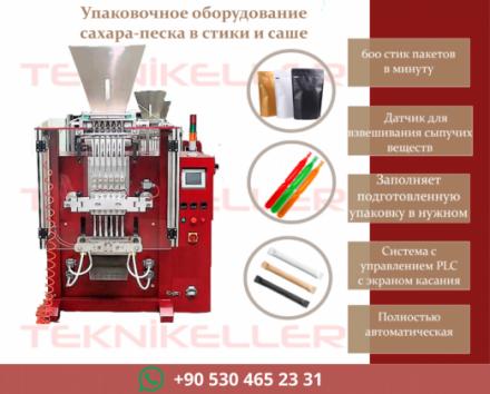 Вертикальная упаковка сыпучих и жидких веществ (мука, сахар, соль, соки и тд.) в стик пакеты. Регулировка массы вещества
