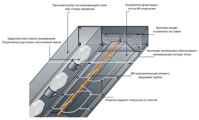 Источником инфракрасного излучения в предлагаемых моделях являются трубчатые кварцевые ИК элементы.