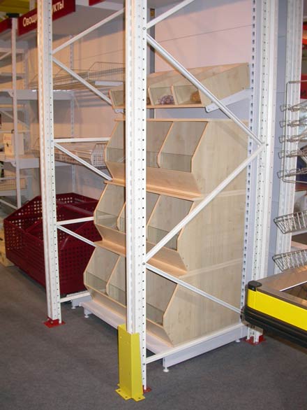 Стеллажные конструкции предназначены для оснащения торговых точек, организованных по типу «склад-магазин», с использованием площадей торгового зала, как для торговли, так и для хранения товарных запасов.