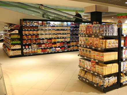 Для демонстрации или хранения товаров народного потребления (продуктовые и хозяйственные супер- и гипермаркеты, книжные и строительные магазины, точки продаж бытовой техники, зоомагазины и пр.) чаще всего используются торговые стеллажи, выполненные из металла. Применение данного материала гарантирует единомоментное решение широкого спектра задач, в числе которых рациональное использование торговых и складских площадей, привлекательный вид торгового зала, а также простой и наглядный доступ к товарам. Как показывает практика, у российских ретейлеров наибольшей популярностью пользуются металлические стеллажи отечественного производства, в частности Euromarket и Микрон. Торговые сети премиум-класса предпочитают стеллажи немецкого производства Wanzl.