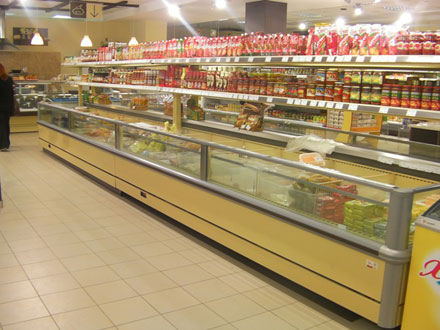 В торговом зале были установлены холодильные витрины ВС21 с увеличенной обзорностью демонстрируемых товарных позиций, холодильные мини-горки ВС31 и ВС21Т, морозильные двухобъемные бонеты ВН27, а также холодильные горки ВС 26 с двойной воздушной завесой (инновационная и высокоэффективная технология, применяемая для максимального ресурсосбережения (до 30 %). Всё модели отличает безупречность внешних форм в сочетании с техническим совершенством: высокоточные температурные режимы служат для максимальной сохранности продукции, а продуманный дизайн конструктивных элементов способствует созданию эффекта ассортиментного изобилия на полках при визуальном акцентировании на каждой товарной позиции.