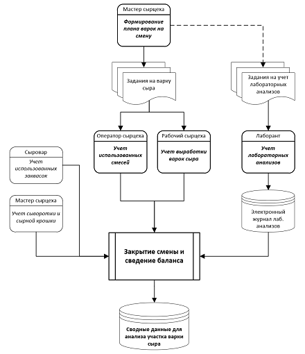 Общая схема автоматизированного учета на участке варки сыров выглядит следующим образом: