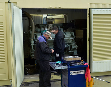 В объём работ по обслуживанию ДГУ входит замена масла и фильтров, проверка натяжения ремней, их замена, регулировка клапанного механизма, диагностика систем впуска и выпуска воздуха, замена охлаждающей жидкости, диагностика электросистемы, проверка АКБ и генератора, диагностика пульта управления, корректировка всей системы и многое другое. Обслуживание генераторов должно проводиться каждые 600 моточасов.