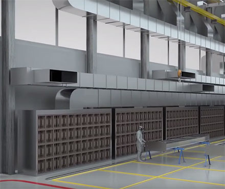 Оператор определяет участки для ведения малярных работ и на пульте управления включает соответствующие сопла над ними. Таким образом, в автоматическом режиме специализированная технологическая вентиляция настраивает подачу воздуха из этих сопел. Производится обдув выбранного участка.