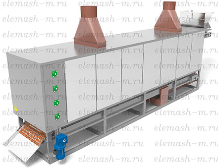 Жарочная ленточная печь ПЖЛ применяется для жарки семечек, орехов, сухариков. Печь работает в стиле «термокамеры». Обжарка продукта осуществляется на конвейерных лентах, которые движутся в термоизолированном тоннеле с промежуточным пересыпанием и охлаждением после обжарки.