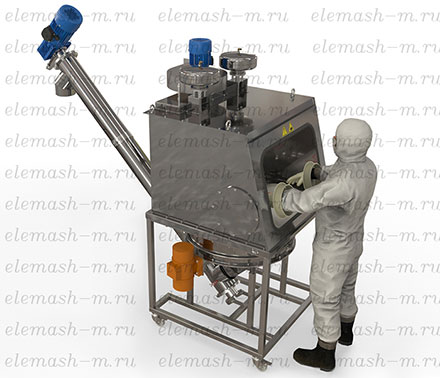 Система растаривания РУ2-Ш100 применяется для растаривания и весового дозирования агрессивных и биологически опасных продуктов в фармацевтической и химической промышленности. Предназначен для сыпучих и пылящих продуктов в бумажных, пленочных одно и многослойных мешках массой до 50 кг.