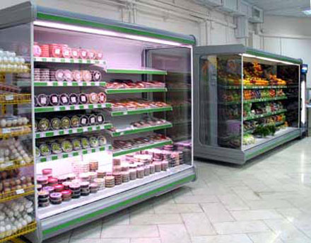 Все холодильное оборудование монтируется в единую линию, позволяя компоновать каналы любой длины. Широкая гамма аксессуаров позволяет грамотно расположить продукты соблюдая все требования СЭС. Холодильное оборудование имеет автоматическое оттаивание ТЭНами. Все оборудование комплектуется бампером-отбойником для защиты фасада от ударов тележками и корзинками. Декоративные панели различных цветов обеспечивают владельца магазина единым фирменным стилем. Для экономии электроэнергии горки и бонеты комплектуются «ночными» шторками и крышками.