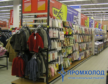 Высокая грузоподъемность. Выбор этого параметра во многом зависит от формата торгового предприятия. Обычно используют полки из расчета 100 кг на полку. Для некоторых товарных групп устанавливались усиленные кронштейны, что обеспечило грузоподъемность до 300 кг.
