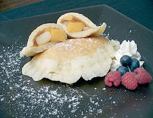 Как и в случае с блинами количество блюд на основе оладий ограничено только Вашим воображением. Создание блюда заключается в добавлении к оладушкам готовых ингредиентов и красивой сервировке. С помощью нехитрого пластикового приспособления большую оладушку можно превратить в пельменеобразный карман с начинкой. Оладьи станут отличным решением как для ресторана с залом, так и для предприятий специализирующихся на готовой еде на вынос.