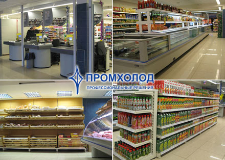 Пример оснащения супермаркета Экстра от компании Промхолод