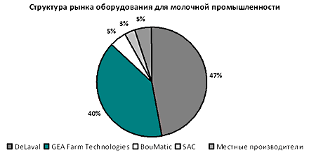 По данным компании «ГЕА ВестфалияСердж» годовой оборот рынка доильного оборудования в России за 2008 год составил 130 млн. евро. Первые два места по обороту занимают компании: DeLaval (60 млн.евро) и GEA Farm Technologies (52 млн.евро), далее с большим отрывом следуют BouMatic (7 млн.евро) и SAC (4 млн.евро). Остальная доля рынка принадлежит местным российским производителям (7 млн.евро).